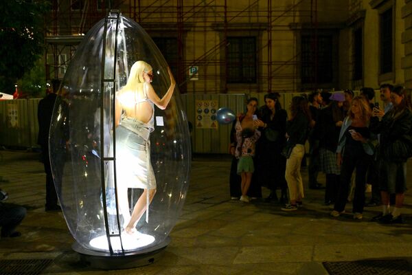 Модель на Egg Hunt после показа Diesel в рамках Недели моды в Милане, Италия.
